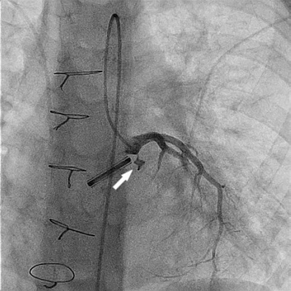Initial aortography did not demonstrate a paravalvular leak but revealed dilation of the left main coronary artery (6.5 mm) and a coronary–left ventricular fistula measuring 2.4 mm in diameter and 4.5 mm in length (figure 1 and video S1).