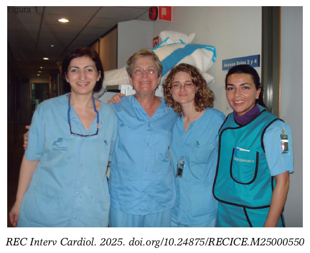 Camino Bañuelos (Puebla de Alcocer, Badajoz, 1947) belongs to the pioneering generation of women physicians who transformed interventional cardiology in Spain. Her vocation was kindled in adolescence, inspired by her father’s stories, a health care worker during the Spanish Civil War. After overcoming academic and social barriers in an era when few women studied medicine, she began her career in the Madrid mountain range, where she is still remembered for her warmth and dedication. She soon entered the emerging field of interventional cardiology at Hospital Clínico San Carlos (Madrid, Spain) becoming a reference in cardiac catheterizations, valvuloplasties, and as a teacher of future specialists.