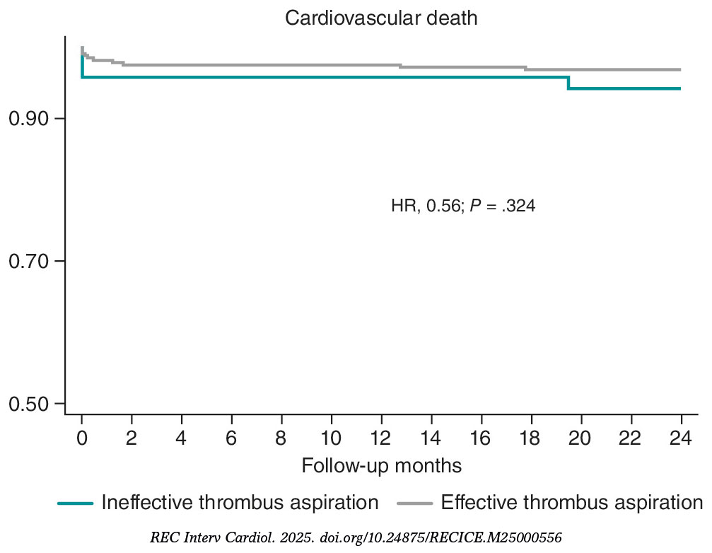 After a mean 60-month follow-up, the composite endpoint (MACE or major bleeding) occurred in 62.0% (235 patients) of the total sample, without significant differences across the groups (66.3% nonrevascularized vs 60.6% revascularized; P = .139) (figure 4).