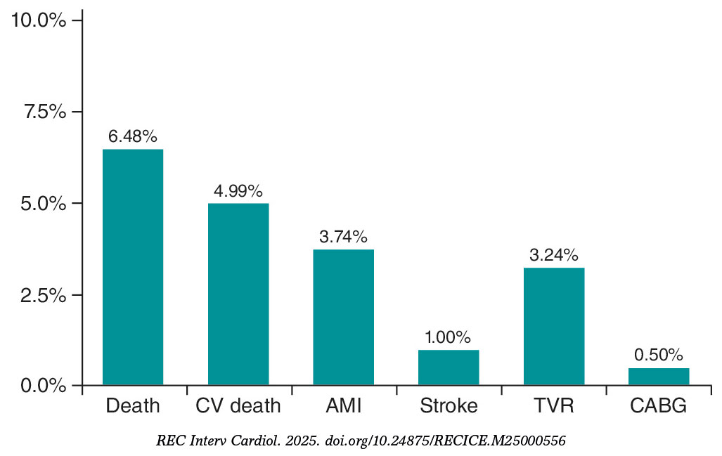 The results of the NOTION-3 trial9 have been recently published. In this study, 452 patients scheduled to undergo TF-TAVI with significant coronary artery disease were randomized to receive either an invasive or a conservative strategy. In this case, the decision to revascularize was guided by the severity of stenosis as assessed by fractional flow reserve. Outcomes were evaluated according to a composite primary endpoint of all-cause mortality, myocardial infarction, and emergency revascularization. At 2 years, patients who had been revascularized showed a significant reduction in the risk of MACE compared with the conservative strategy (26.0% vs 36.0%), driven primarily by a higher rate of unplanned revascularization and without an effect on mortality. However, this risk reduction was accompanied by a higher rate of bleeding events (28.0% vs 20.0%). A major limitation of this trial is its open-label design and the fact that it did not exclude patients with angina, which may have contributed to the increased rate of unplanned revascularization.