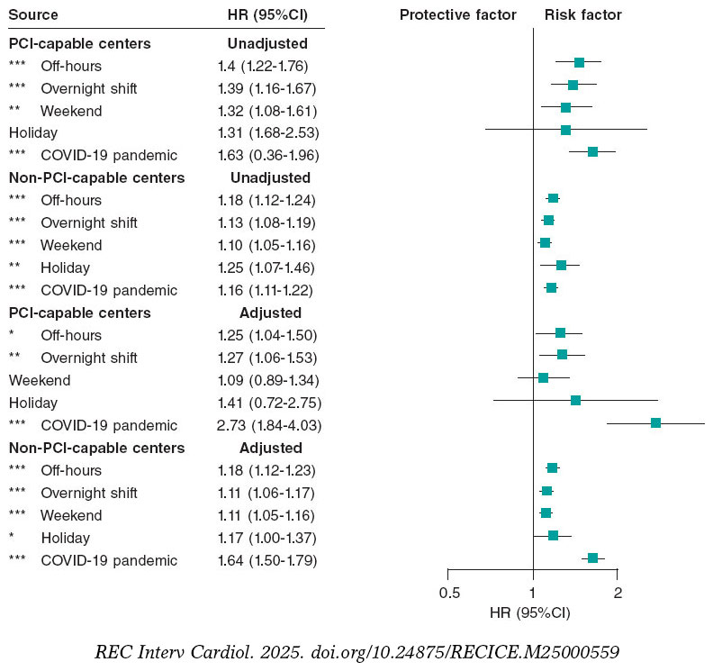 R. Moreno is associate editor of REC: Interventional Cardiology; the journal’s editorial procedure to ensure impartial handling of the manuscript has been followed; moreover, he has received consulting fees and honoraria/speaker fees from Abbott vascular, Boston Scientific, Medtronic, Terumo, and Biotronik. A. Jurado-Román reported receiving consulting fees from Boston Scientific and Philips; honoraria/speaker fees from Abbott, Boston Scientific, Shockwave Medical, World Medica, and Philips; and serves as a proctor for Abbott, Boston Scientific, World Medica, and Philips. G. Galeote has received honoraria/speaker fees from Meril, Boston Scientific, Abbott SMT, and Biomenco. A. Gonzálvez-García has received honoraria from Abbott. J. Suárez de Lezo has received honoraria/ speaker fees from Abbott and Philips. F. Hidalgo has received honoraria/speaker fees from Philips. M. Basile reported receiving consulting fees and speaking fees from Iberhospitex. B. Garcia del Blanco disclosed his role as a proctor for Edwards Lifescienses and his participation on the Advisory Board of Iberhospitex. All other authors declared no conflicts of interest whatsoever.
