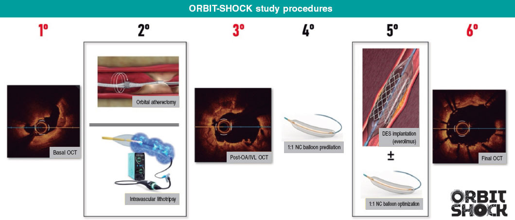 The ORBIT-SHOCK trial is conducted in full compliance with the Declaration of Helsinki and the principles of Good Clinical Practice. The study protocol was approved by the central Clinical Research Ethics Committee of Hospital Universitario Ramón y Cajal (Madrid, Spain) and subsequently by the ethics committees of all other participant centers. All patients provide written informed consent before enrollment and randomization. Furthermore, the study was designed and is reported in accordance with the SAGER guidelines. Measures have been implemented to promote equitable participant inclusion and to minimize sex and gender bias. Sex-disaggregated data will be collected and analyzed to assess potential differences in procedural and clinical outcomes between men and women. The ORBIT-SHOCK pilot study is registered at ClinicalTrials.gov with the identifier NCT06736665.