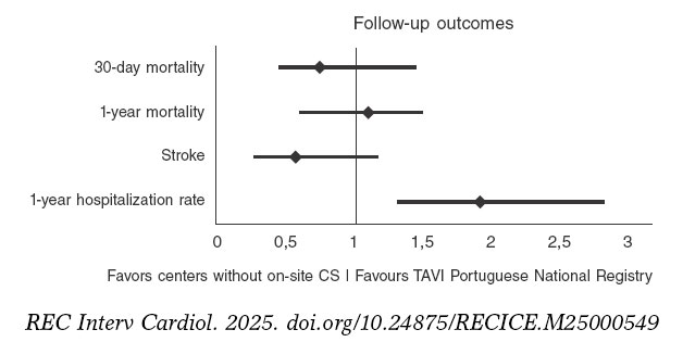 In addition, outcomes were compared with the most recent Portuguese national TAVI registry,16 which exclusively includes centers with on-site CS, to provide a benchmark for procedural safety and efficacy profile.