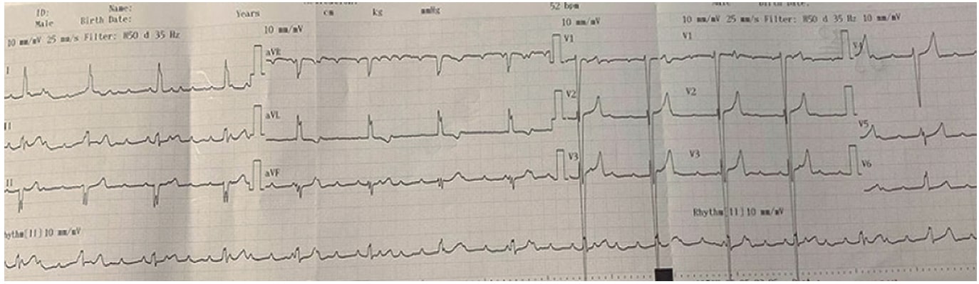 Figura 1. Caso 1: electrocardiograma del bloqueo auriculoventricular completo tras el cierre percutáneo de la comunicación interventricular.