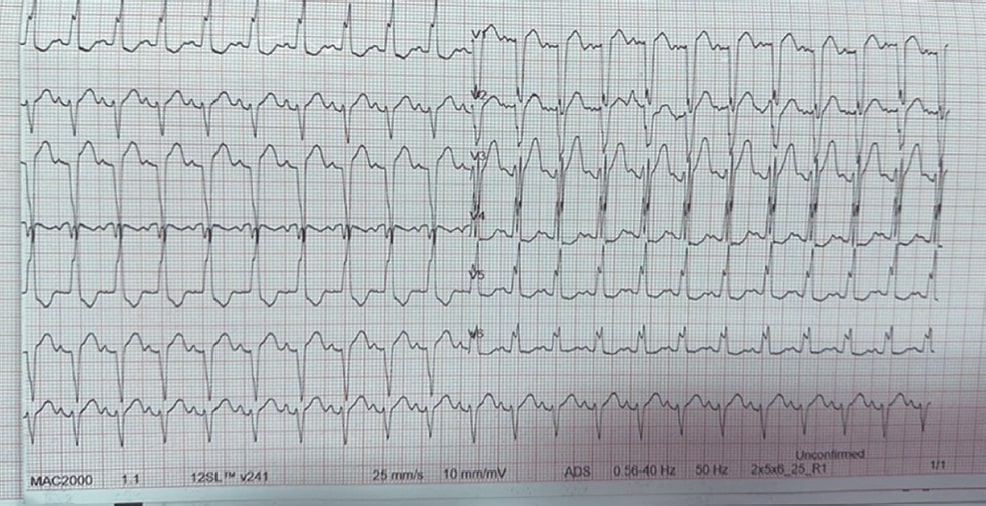 Figura 2. Caso 3: electrocardiograma del bloqueo de rama izquierda tras el cierre percutáneo de la comunicación interventricular.