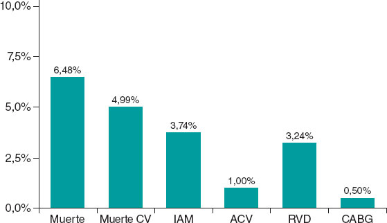 Tabla 4. Incidencia del combinado de eventos cardiovasculares adversos mayores en el seguimiento