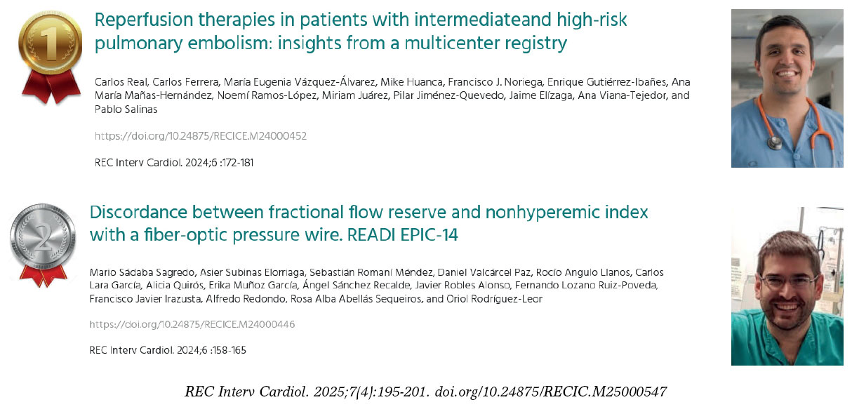 Figura 11. Artículos originales de REC: Interventional Cardiology premiados en el congreso anual de la Asociación de Cardiología Intervencionista de la Sociedad Española de Cardiología de 20256,7.