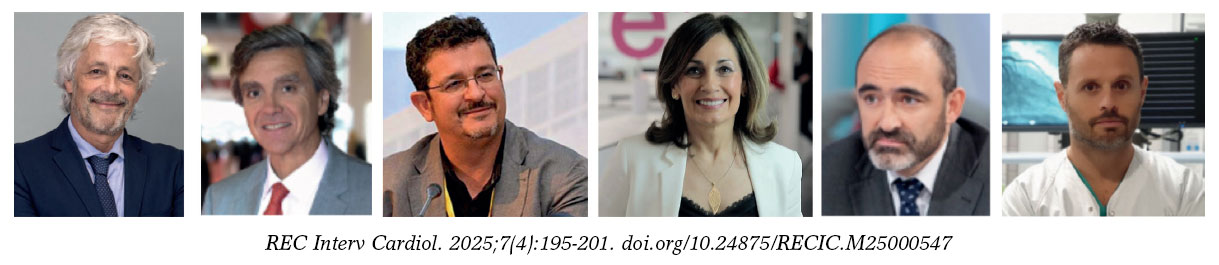 Figura 12. El equipo de editores de REC: Interventional Cardiology. De derecha a izquierda: José M. de la Torre-Hernández, Fernando Alfonso, Armando Pérez de Prado, Soledad Ojeda, Raúl Moreno y Rafael Romaguera.
