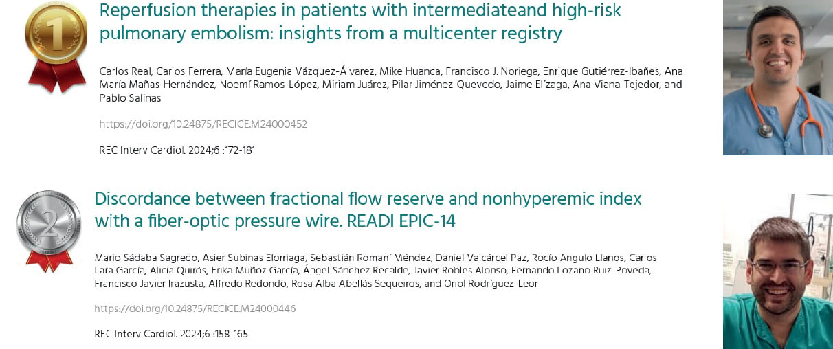 6. Real C, Ferrera C, Vázquez-Álvarez ME, et al. Reperfusion therapies in patients with intermediate and high-risk pulmonary embolism:insights from a multicenter registry. REC Interv Cardiol. 2024;6:172-181.