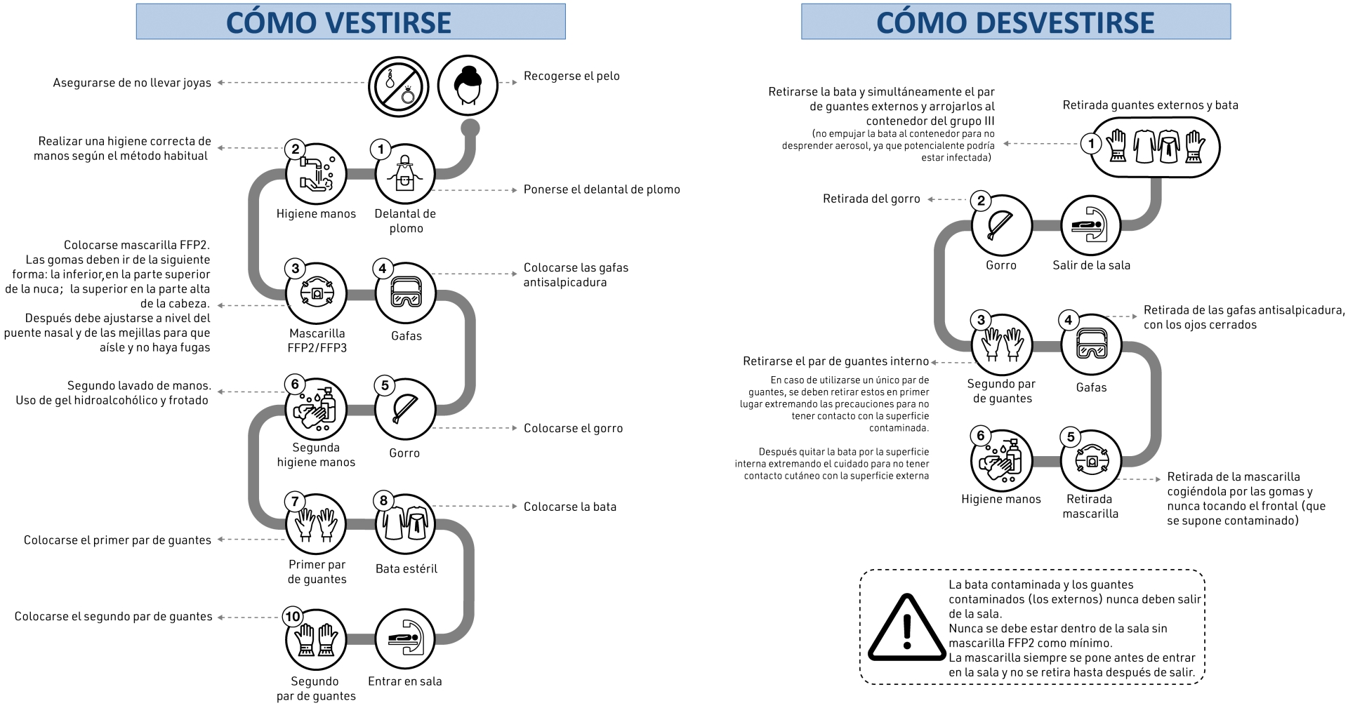Figura 3. Indicaciones sobre cómo debe vestirse y desvestirse el personal sanitario de las salas de hemodinámica y electrofisiología.