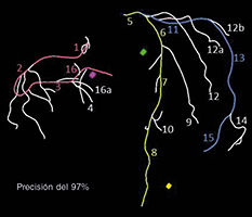 Figura 3. Segmentación automática del árbol coronario extraída de una tomografía computarizada multicorte con una precisión del 97%.